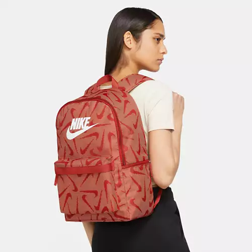 Grab your gear and get going in style with the Nike Heritage Backpack. It features two zippered pockets to help keep your gear organized and an allover Swoosh print for added flair.