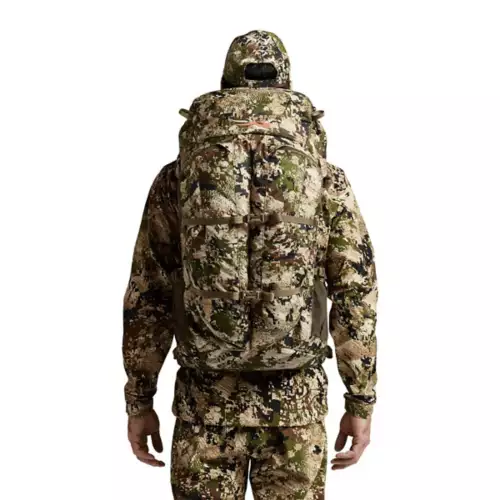 The SITKA Mountain 2700 Pack is a streamlined pack designed for big game hunters. This SITKA pack can support loads up to 45 pounds and has 2,700 cubic inches of storage space. 450-Denier polyester reinforcements on the back pockets and bottom panels stand up to rugged use, while the reinforced waist belt keeps the pack secure as you trek through the backcountry. The Mountain 2700 pack has several pockets, including an internal security pocket, a hydration sleeve, side pockets for tripods, and two vertical exterior pockets for storing spotting scopes or extra rain gear. Built to provide hunters a hard-working day pack, the SITKA Mountain 2700 Pack offers ample room for storing gear with a streamlined, functional design.