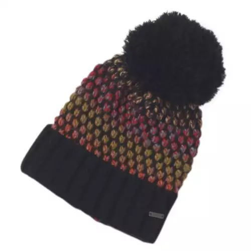 Multi-color popcorn knit beanie with contrast turnback rib and